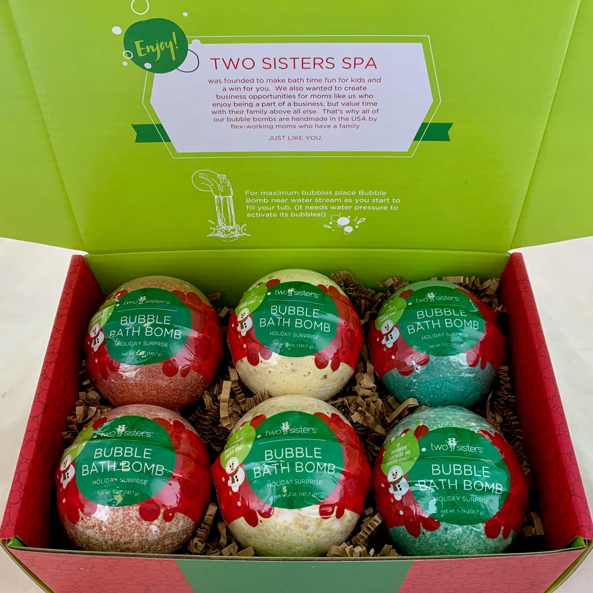 This 6-pack of Kids Christmas Squishy Toy Bubble Bath Bombs inside will put a big smile on your kiddo's face. Each Bubble Bath Bomb has a holiday squishy toy surprise hidden inside, which will be revealed as the bath bomb fizzes, bubbles, releases scent, and colors your bath water.